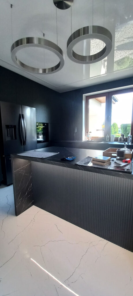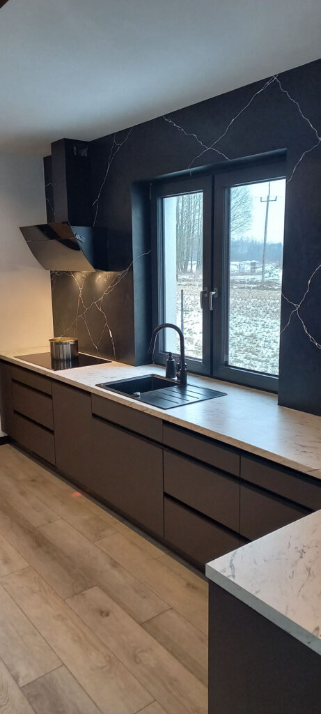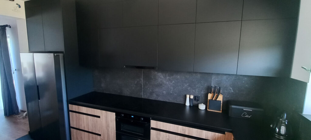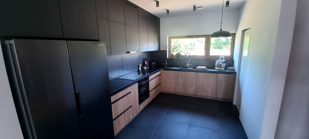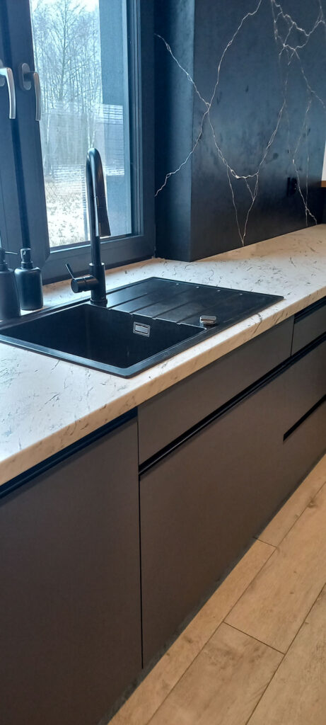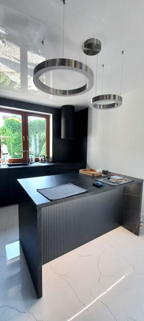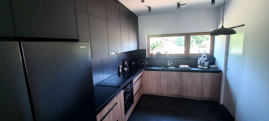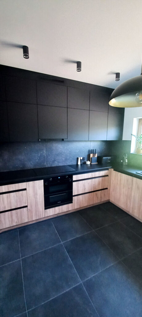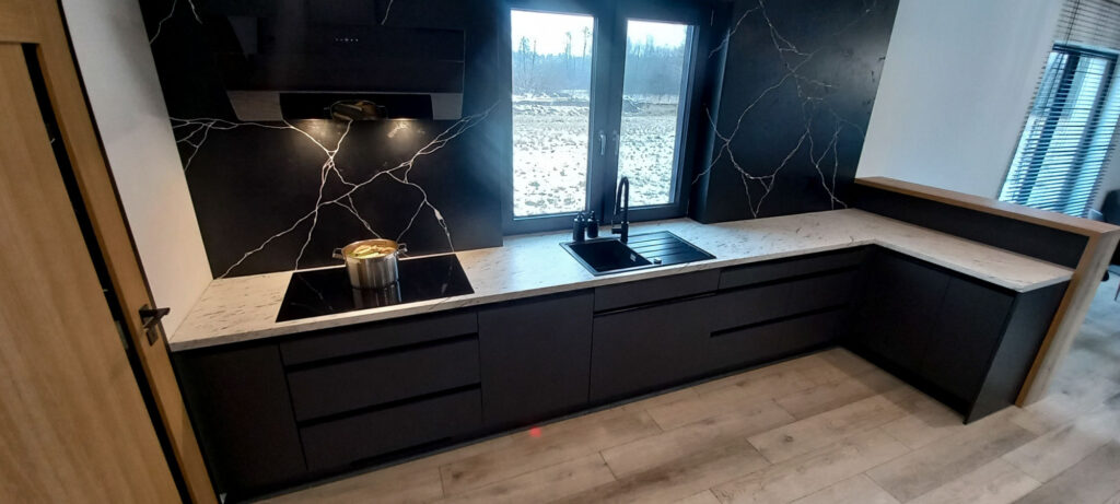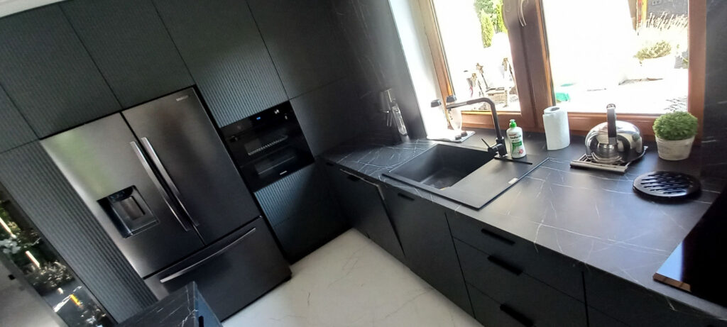 Kuchnia w czerni sprawdzi się zarówno w stylu industrialnym, jak i klasycznym, tworząc przestrzeń o ponadczasowym wyglądzie.