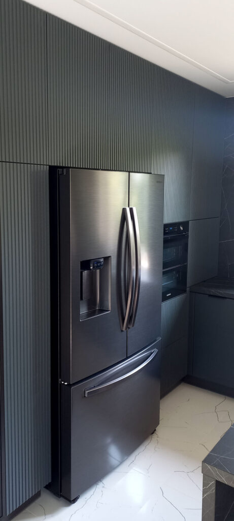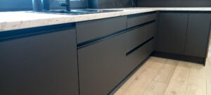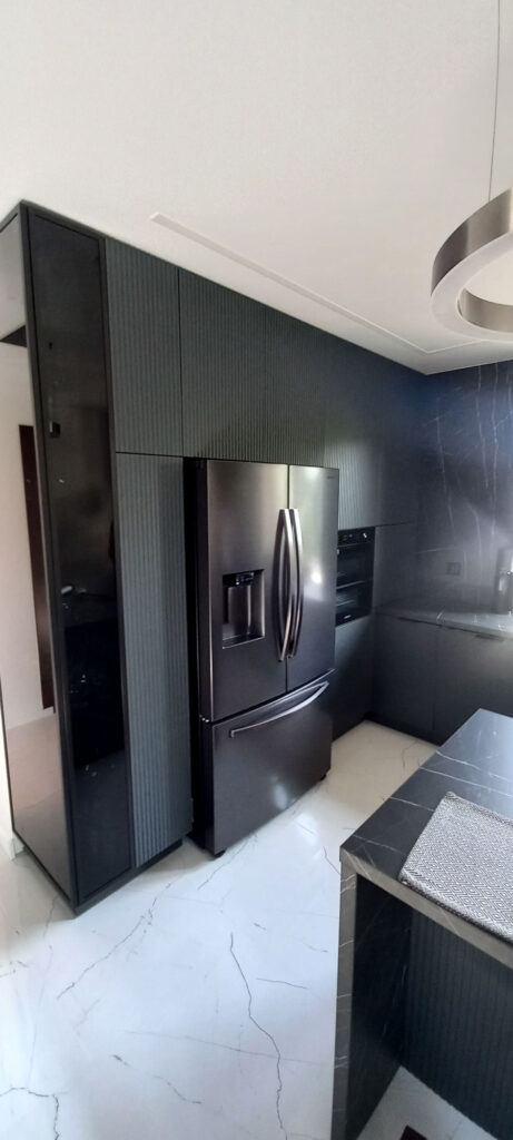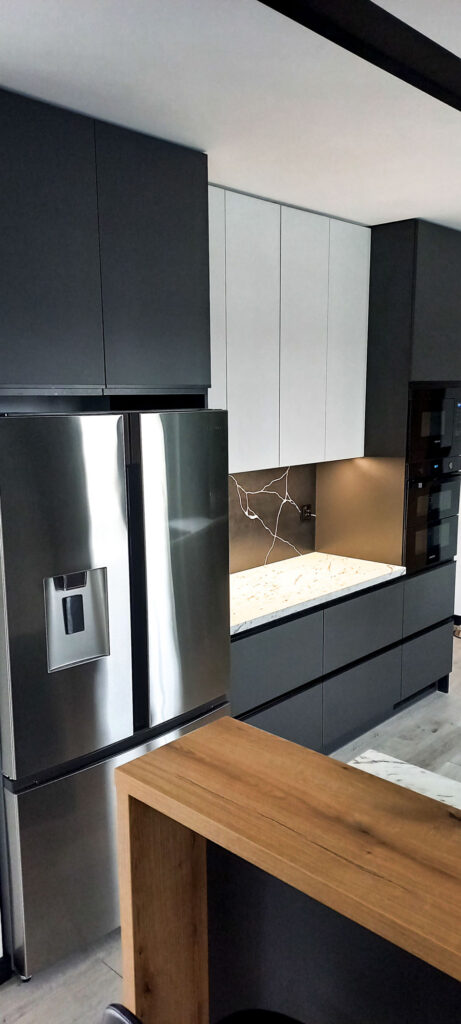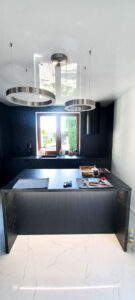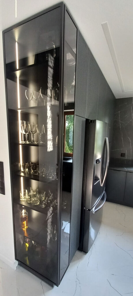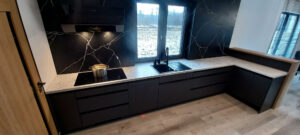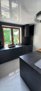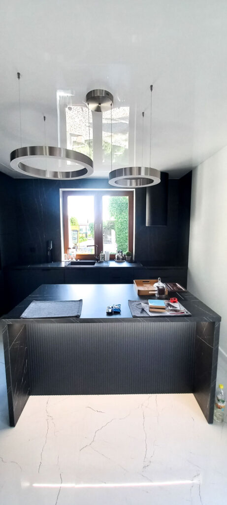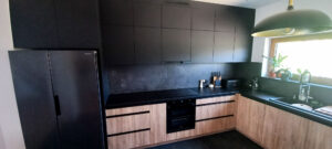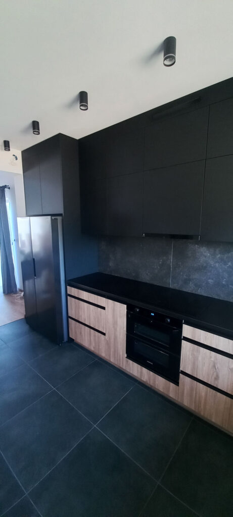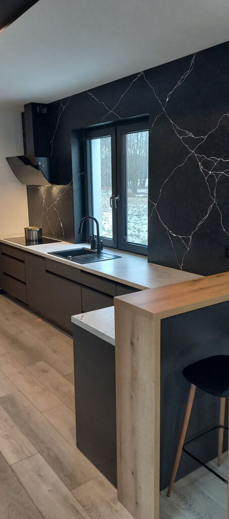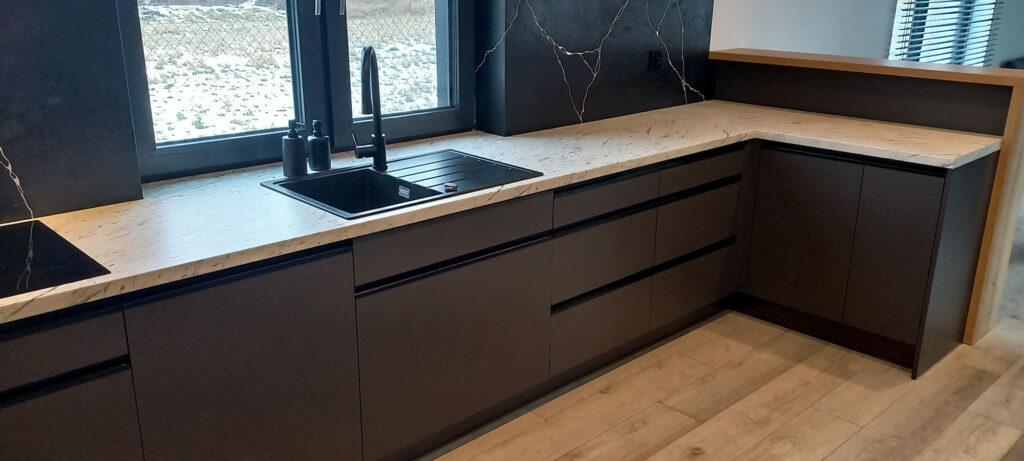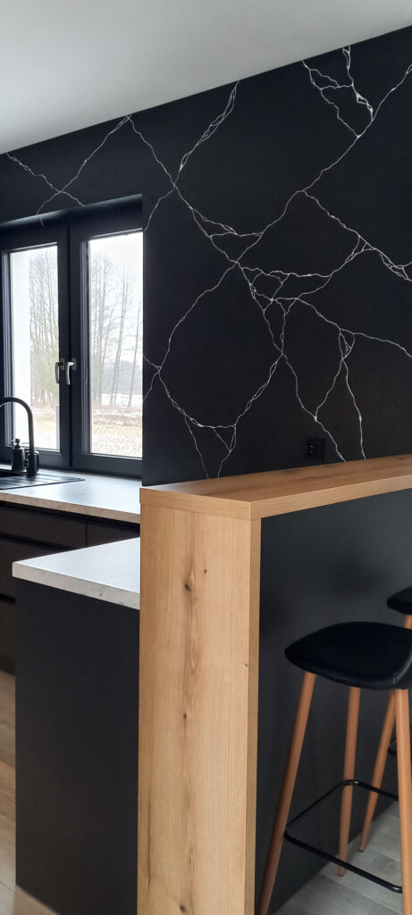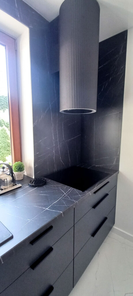 Kuchnia w czerni sprawdzi się zarówno w stylu industrialnym, jak i klasycznym, tworząc przestrzeń o ponadczasowym wyglądzie.